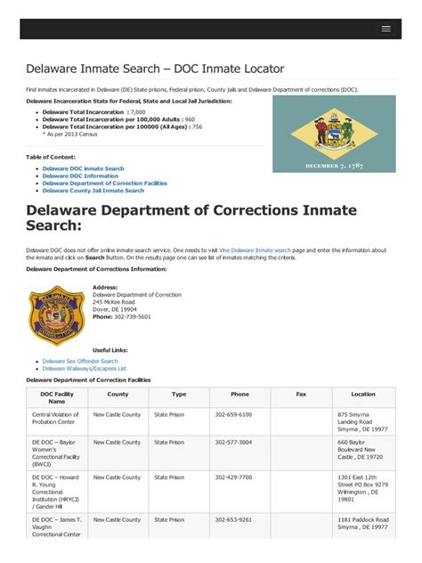 Delaware Inmate List. The state of delaware has only four state prisons. Delaware prison and jail system.